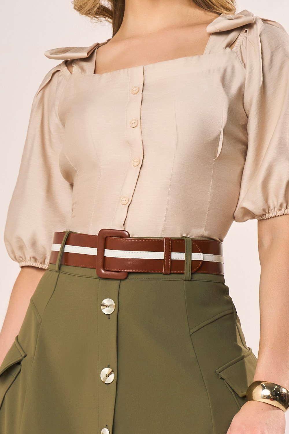 LANÇAMENTOFRETEGRÁTISENVIOIMEDIATOSaia Reta Caramelo Detalhes De Tachas Midi FasciniusR$ 427,71 no PIX