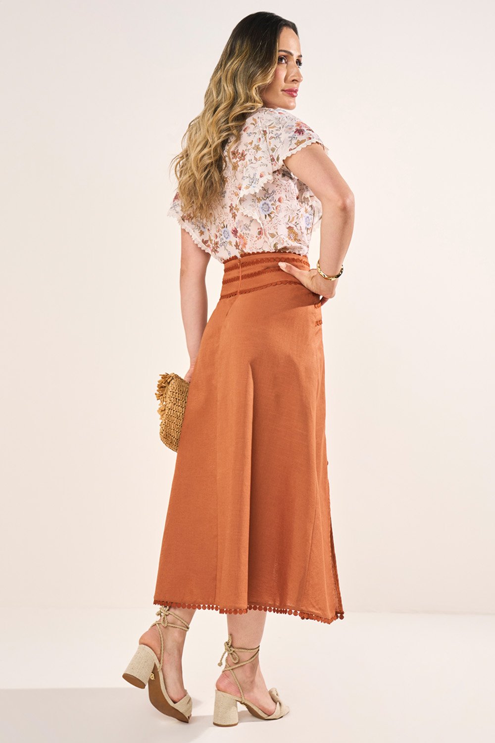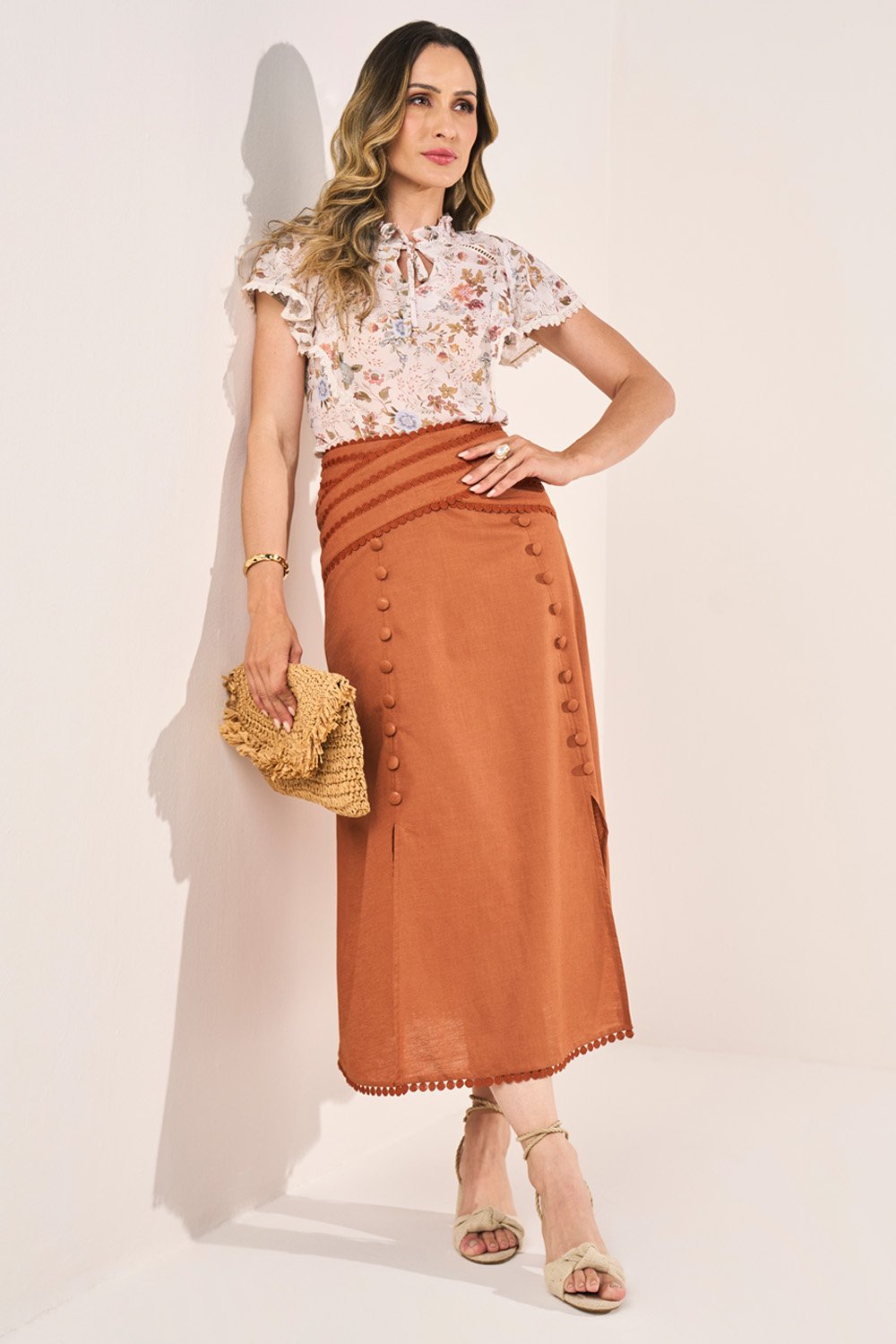 Confeccionada em crepe de bom caimento, a peça garante conforto e frescor em todas as estações. A fluidez do tecido proporciona movimento natural, enquanto a estrutura reforça o caimento sofisticado. A durabilidade e o toque macio tornam a peça prática, perfeita para uso no dia a dia sem perder a elegância.