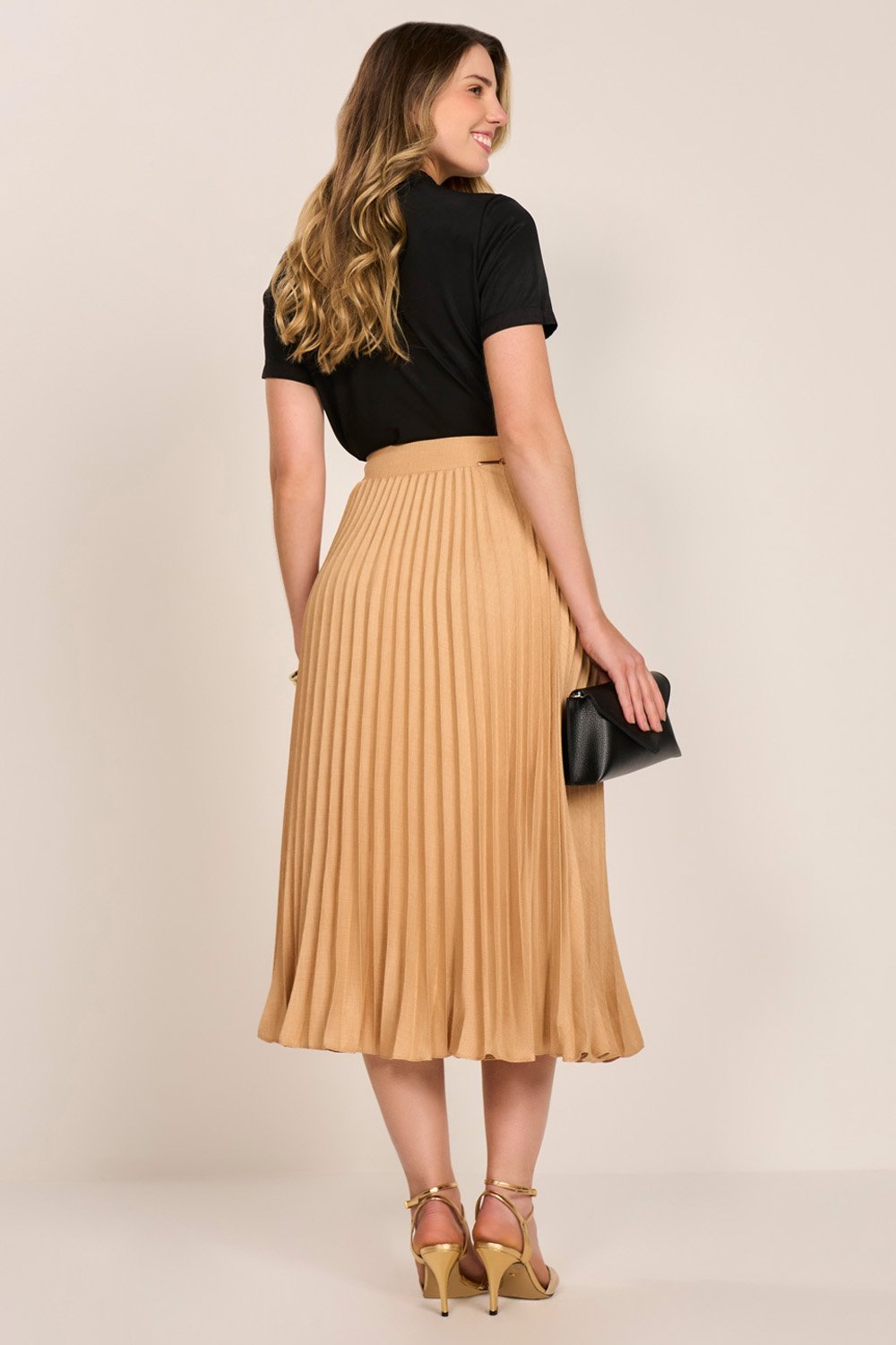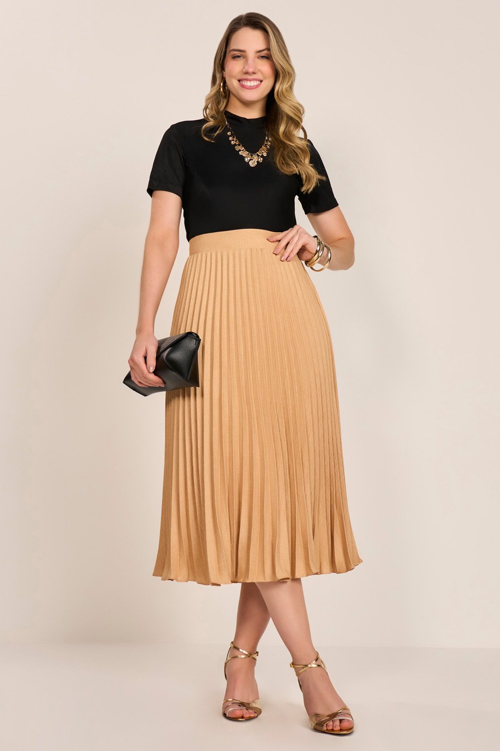 Confeccionada em viscose acetinada, possui caimento fluido, toque macio e acabamento levemente brilhante. Perfeita para looks formais ou casuais, proporciona frescor e conforto ao longo do dia.