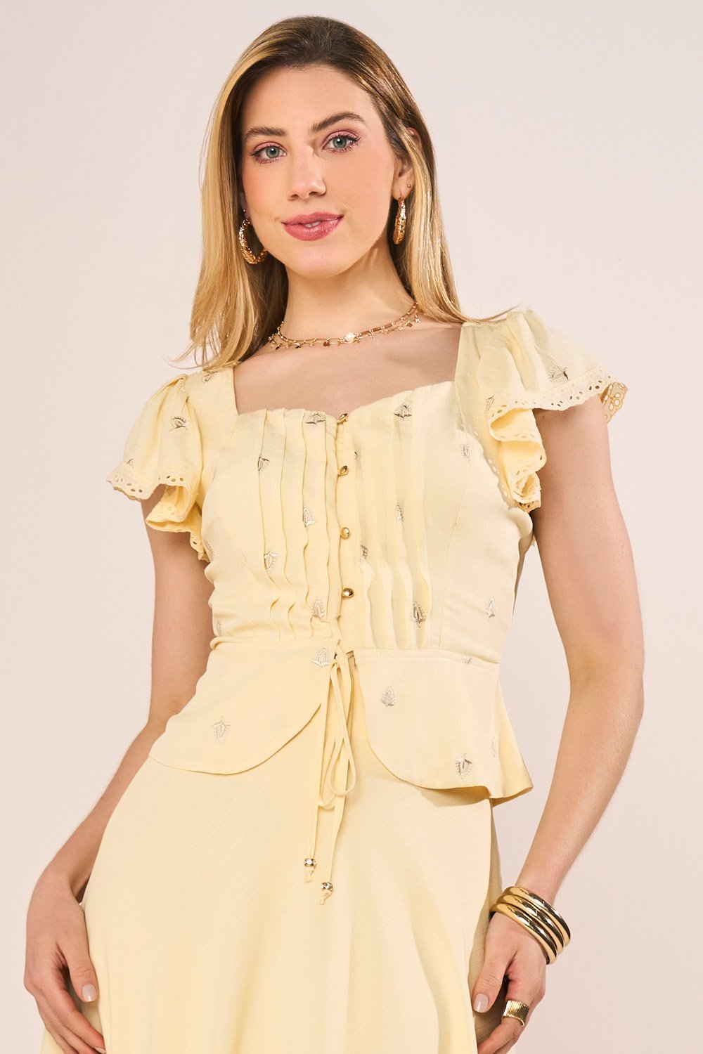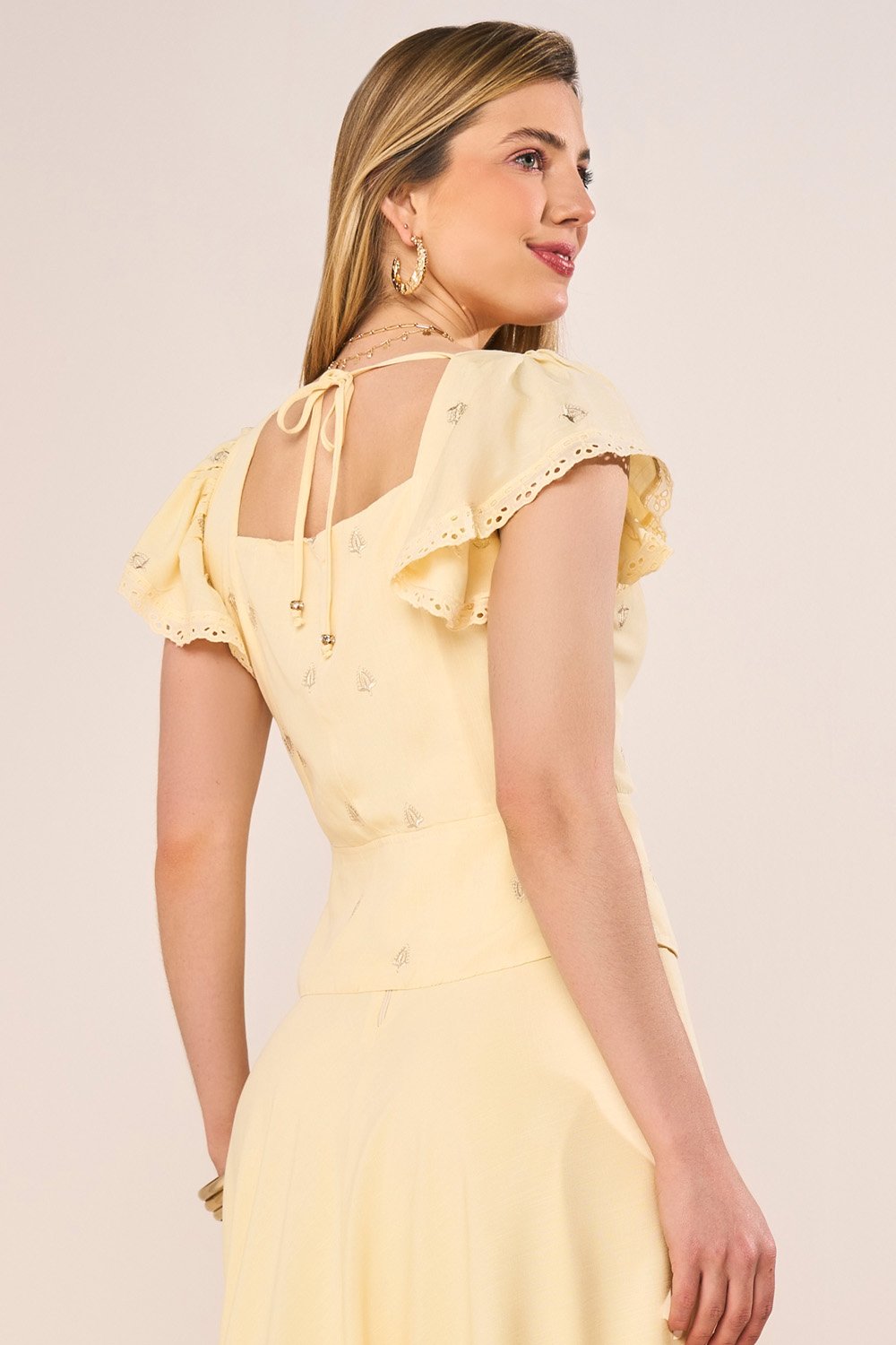 -15%FRETEGRÁTISENVIOIMEDIATOConjunto Bege Com Bordado Richelieu Evasê Midi Fasciniusde R$ 879,90 porR$ 695,57 no PIX