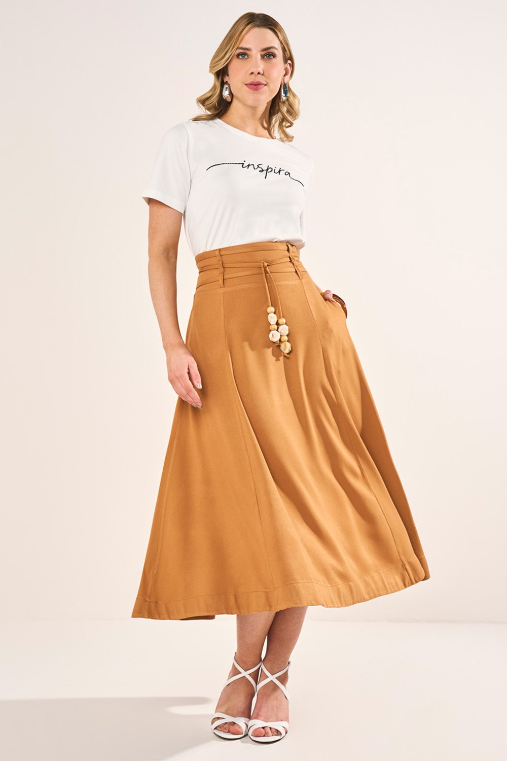 -30%FRETEGRÁTISENVIOIMEDIATOSaia Marrom Detalhes Em Guipir Fenda Frontal Evasê Midi Fasciniusde R$ 519,90 porR$ 338,45 no PIX
