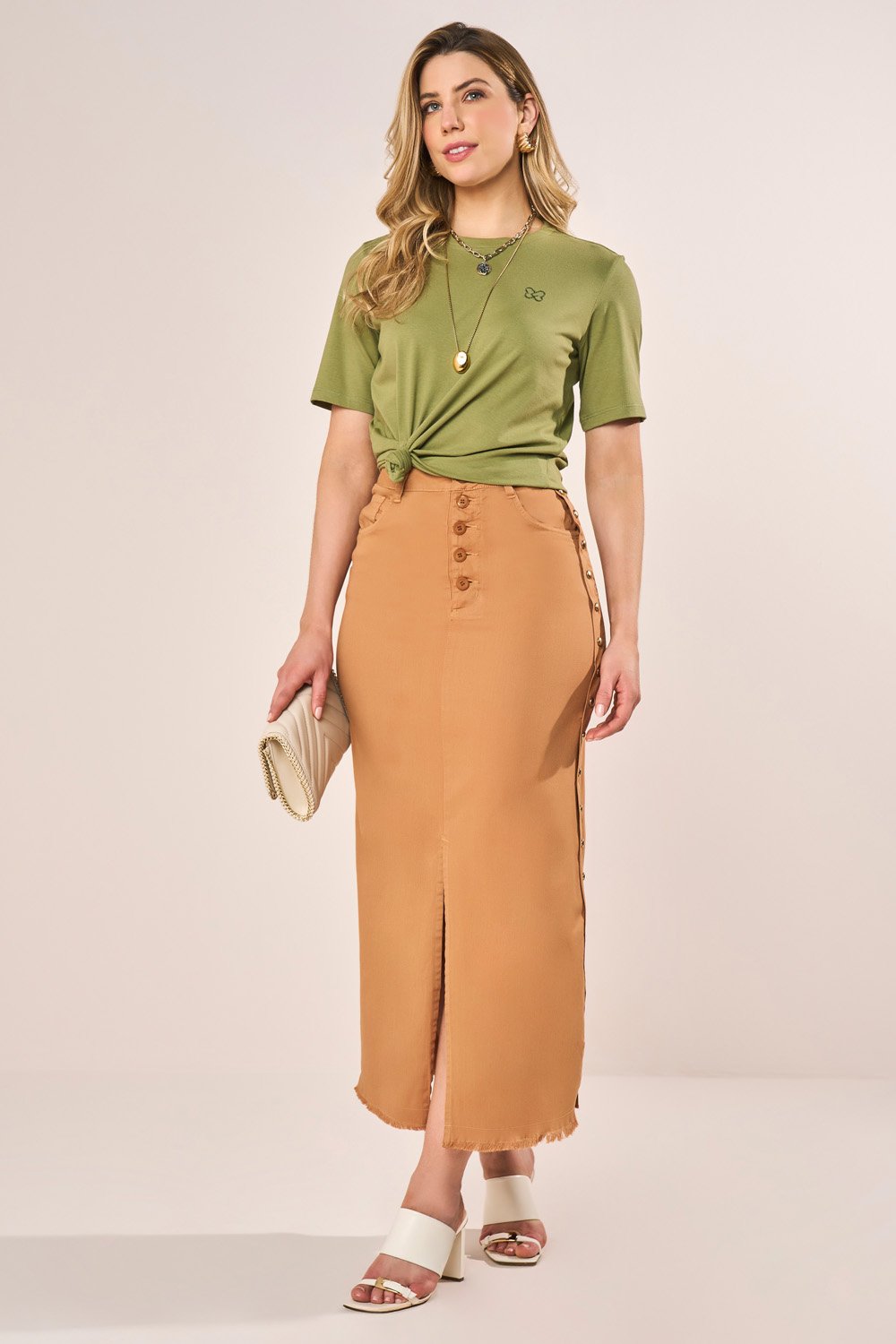 Feita em algodão com elastano, oferece toque aveludado e estrutura firme. A elasticidade do tecido proporciona ajuste confortável e liberdade de movimentos, sem perder o caimento impecável. Um material de qualidade premium, pensado para acompanhar o ritmo do dia a dia com elegância.