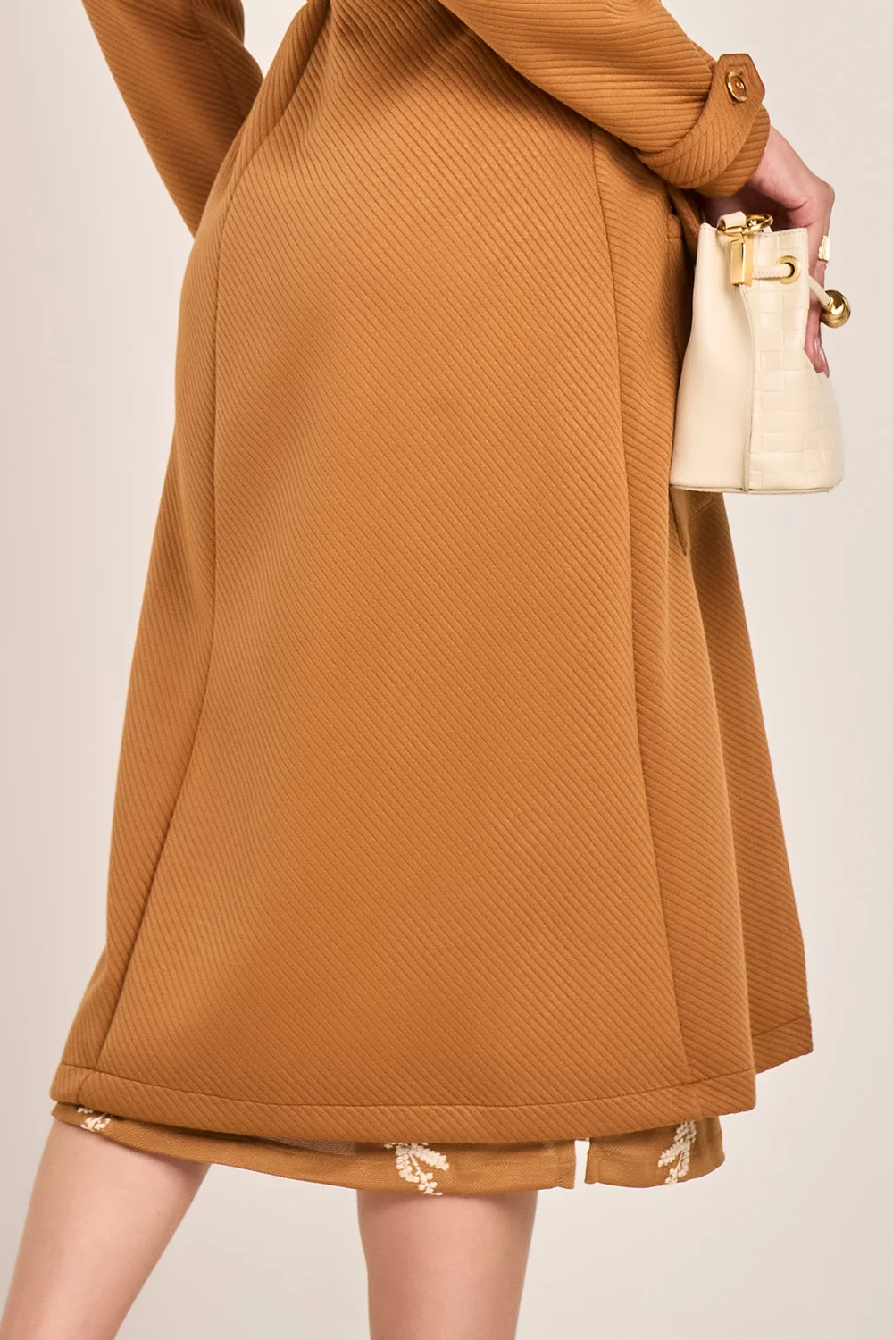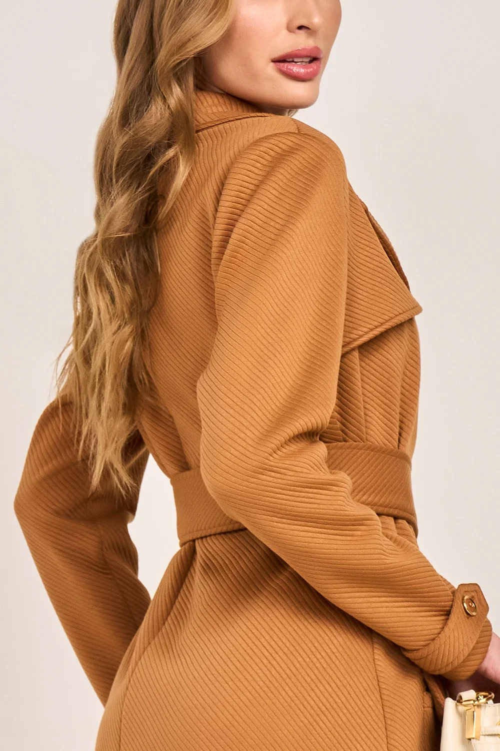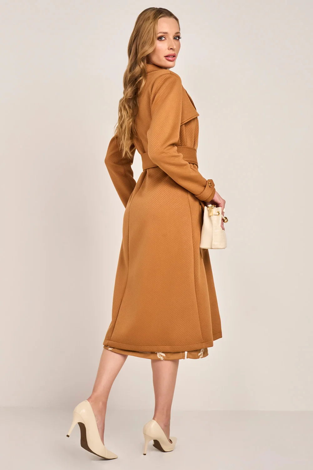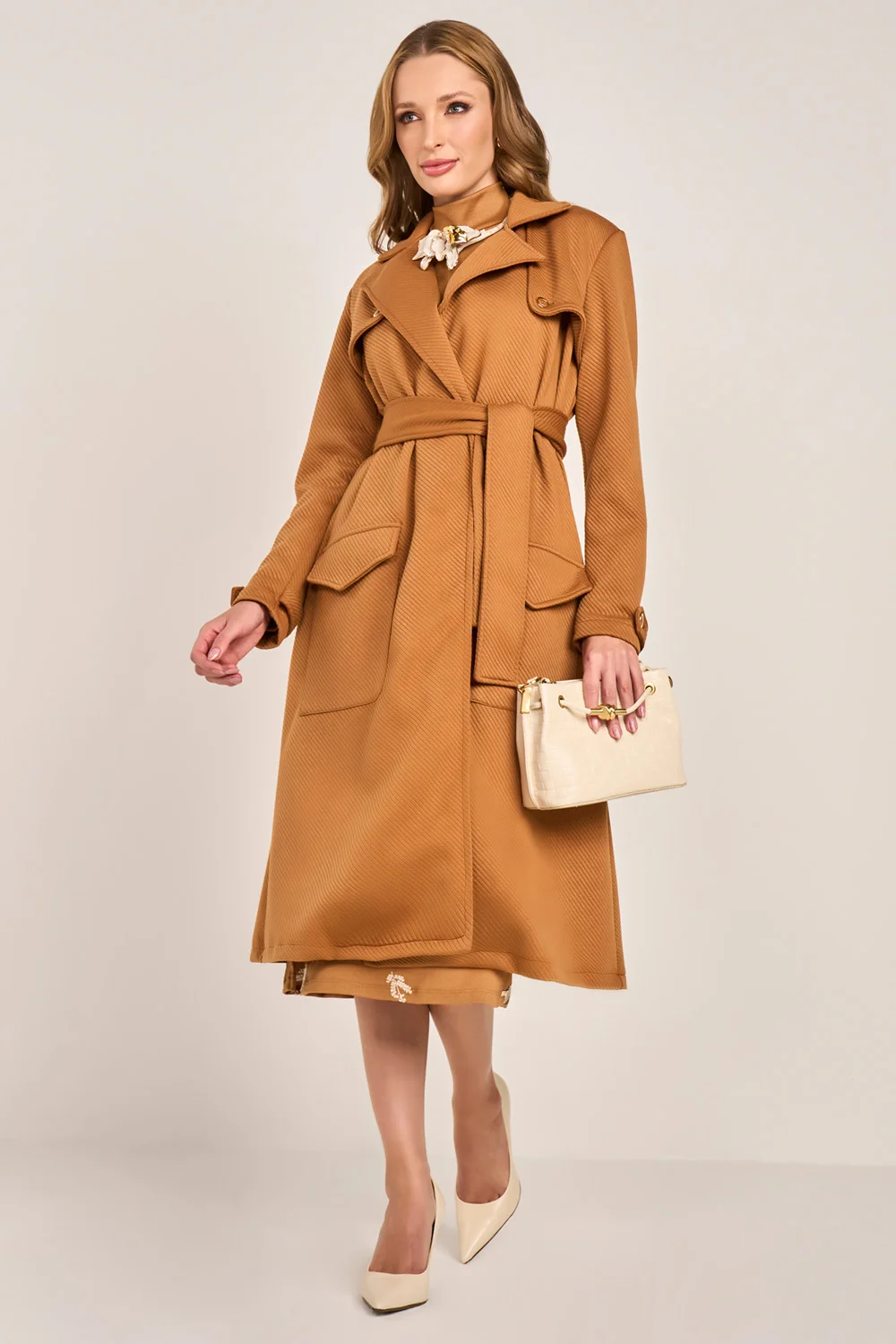 Um trench coat que é pura elegância e estilo. Com modelagem reta e textura em malha matelassê, é perfeito para os dias mais frios, garantindo conforto e sofisticação. Acompanha cinto faixa que realça a cintura, criando uma silhueta elegante.