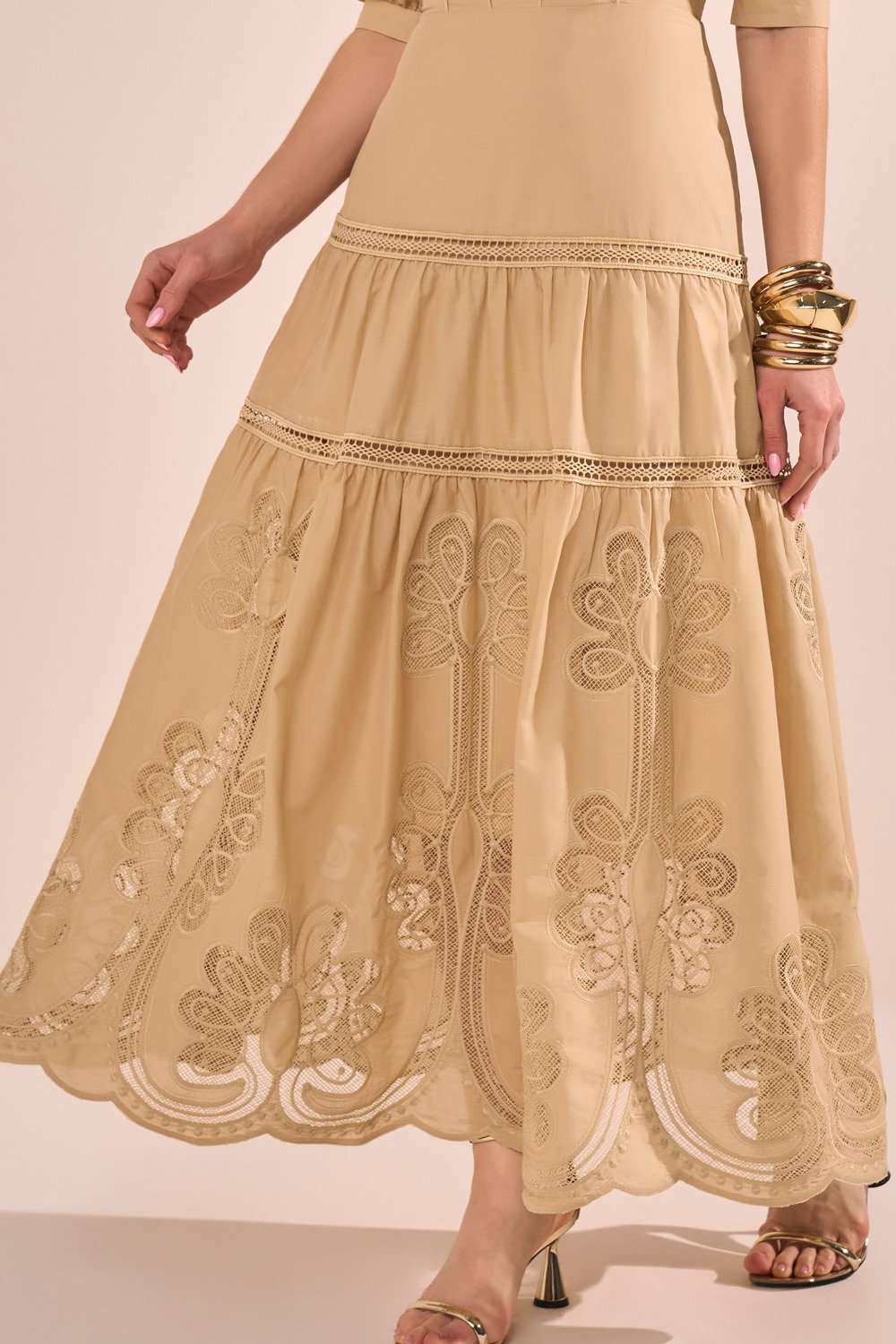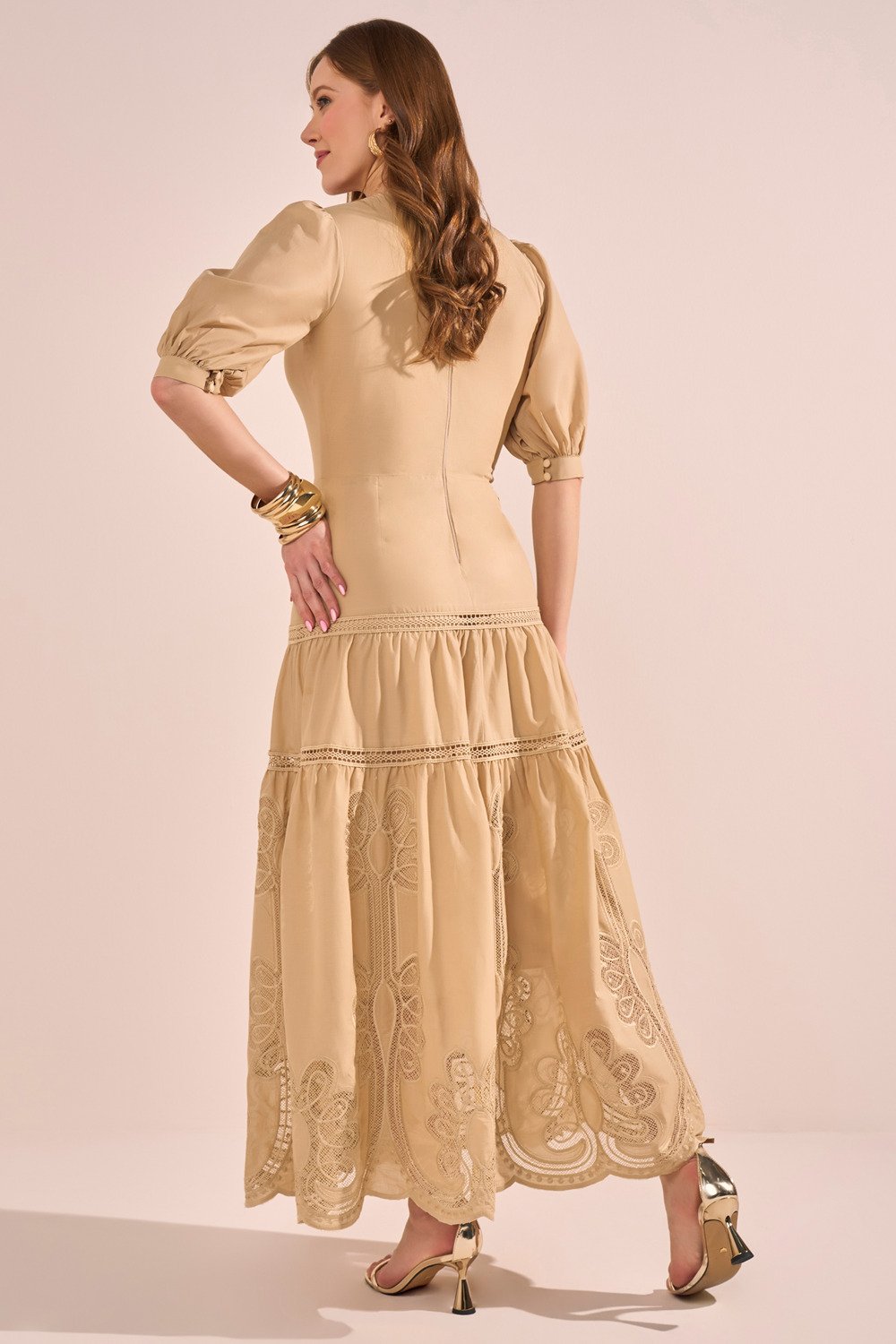 -30%FRETEGRÁTISENVIOIMEDIATOVestido Bege Com Guipir E Babados Godê Midi Fasciniusde R$ 1.099,90 porR$ 716,03 no PIX