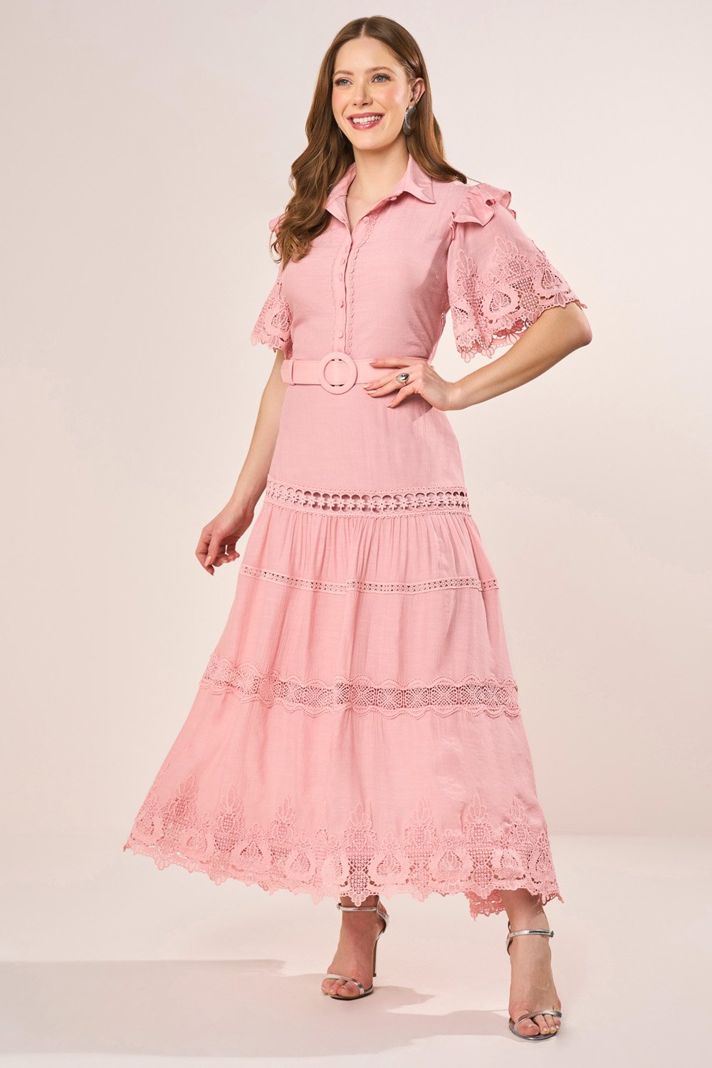 -20%FRETEGRÁTISENVIOIMEDIATOVestido Rosa Decote Redondo E Babados Evasê Midi Fasciniusde R$ 999,90 porR$ 743,93 no PIX