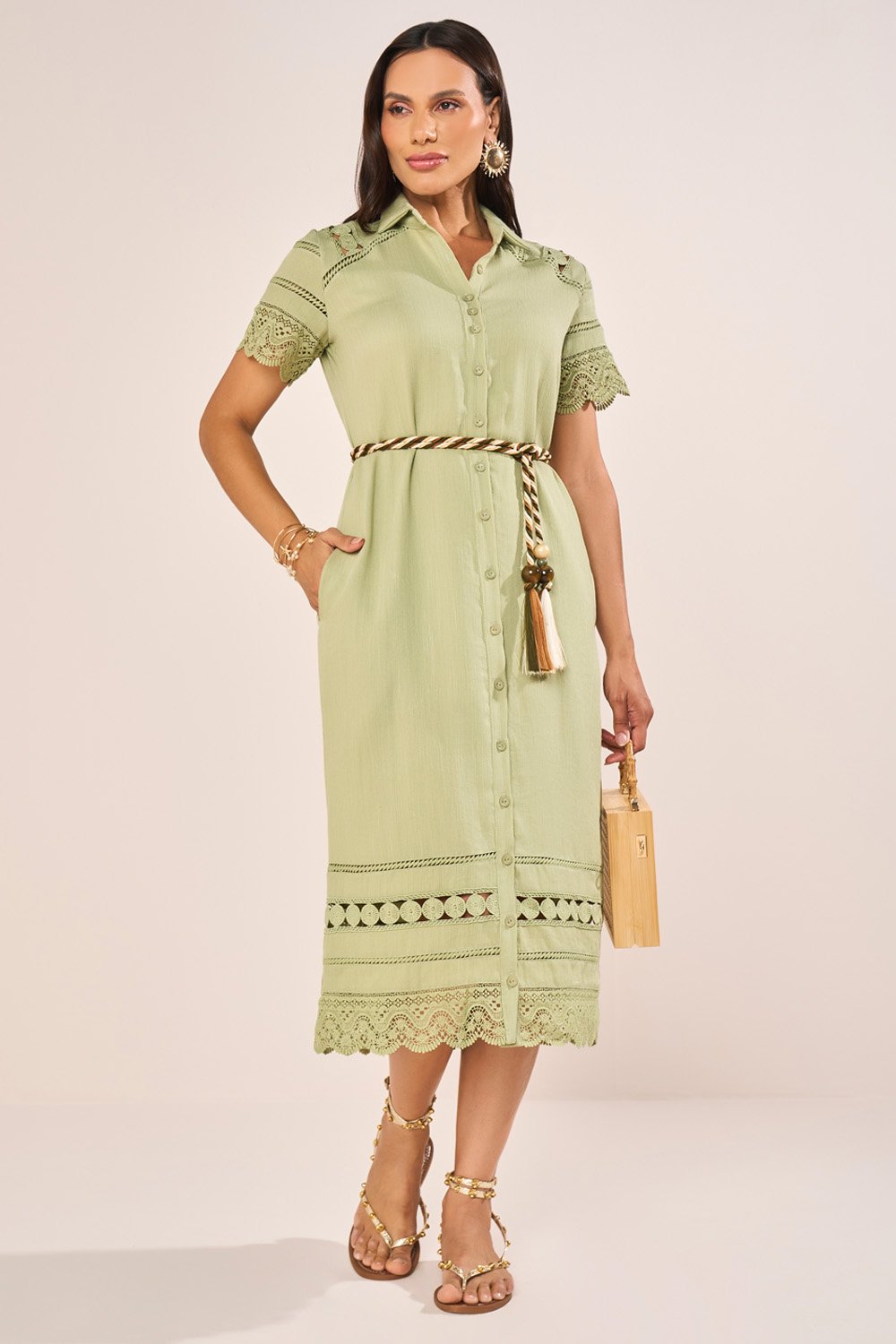 O vestido chemise em viscose apresenta design elegante e contemporâneo, com abotoamento frontal ao longo de toda a peça, garantindo praticidade e visual alinhado. A modelagem reta proporciona caimento mais estruturado e sofisticado, acompanhando o corpo com conforto e sem marcar excessivamente. As mangas curtas recebem acabamento delicado, reforçando a feminilidade do modelo. A peça acompanha cinto cordão, que permite marcar a cintura de forma opcional, oferecendo versatilidade e diferentes possibilidades de uso.