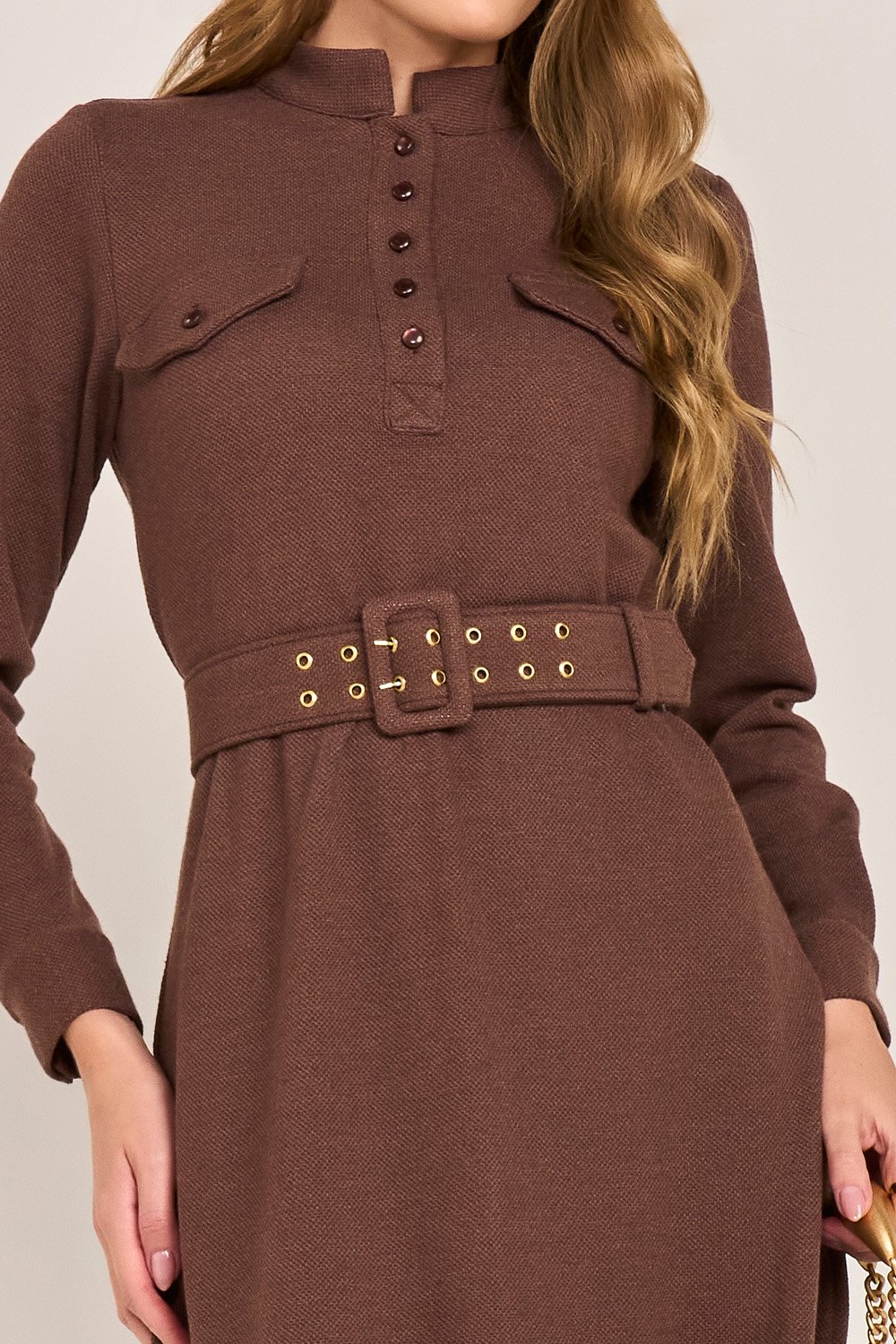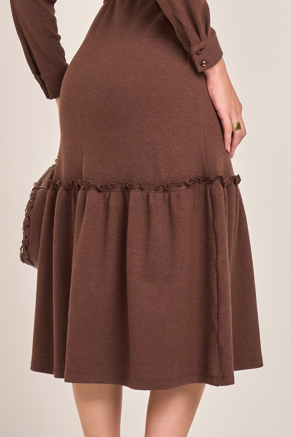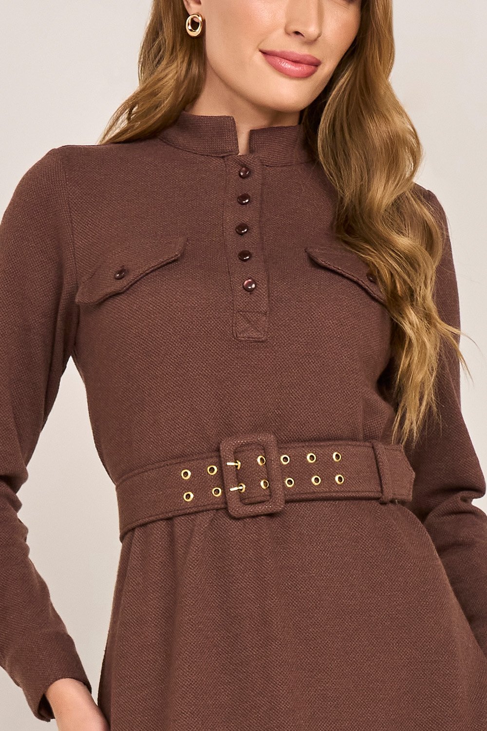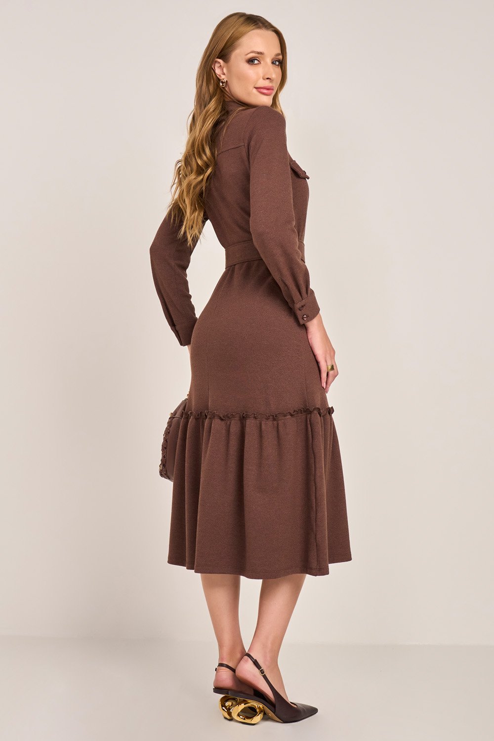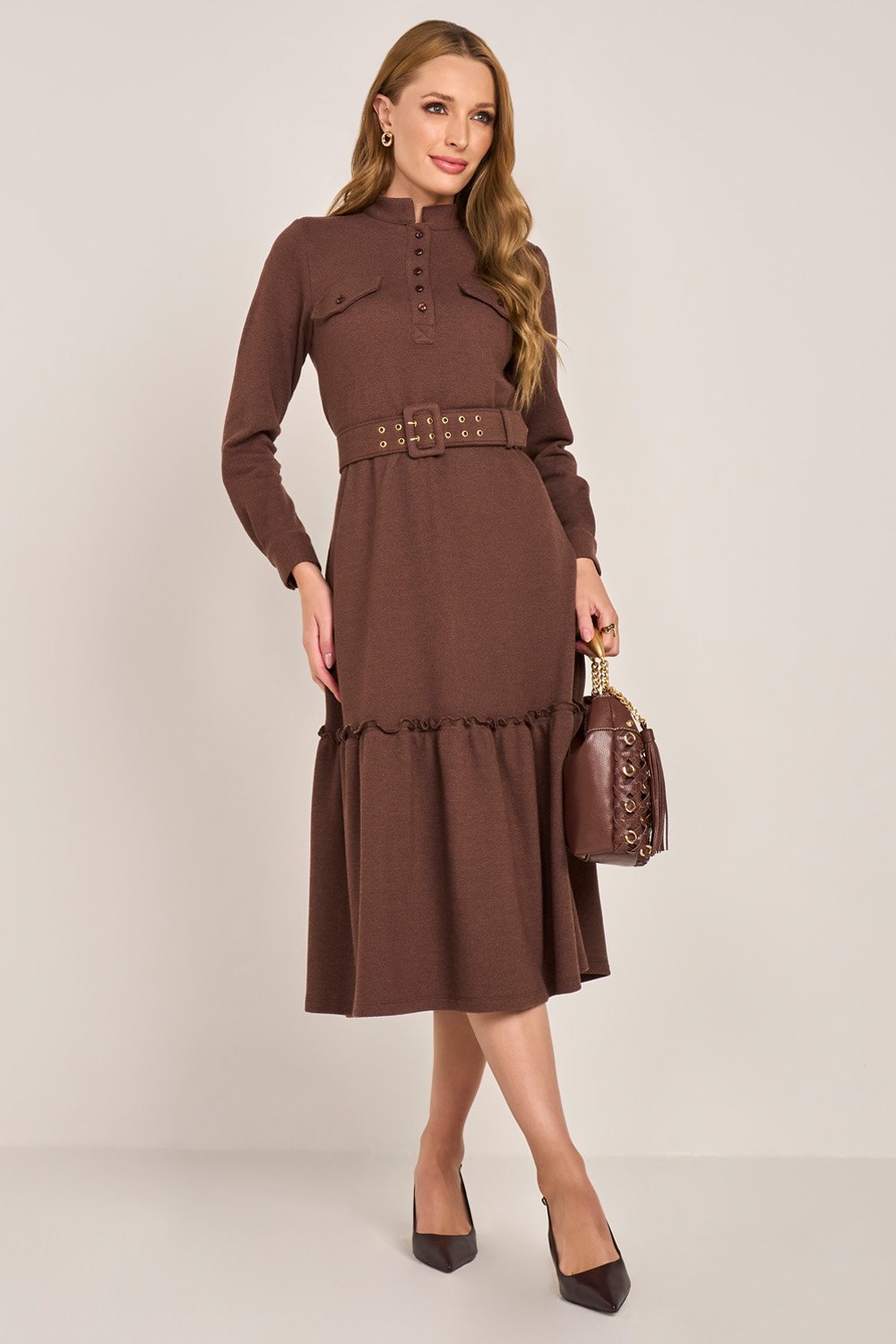 O cinto encapado com fivela é um detalhe que confere sofisticação e permite ajustar o vestido de acordo com a silhueta. Os botões no decote e o zíper nas costas oferecem praticidade e elegância. A modelagem midi evasê e o forro garantem conforto e um caimento impecável.