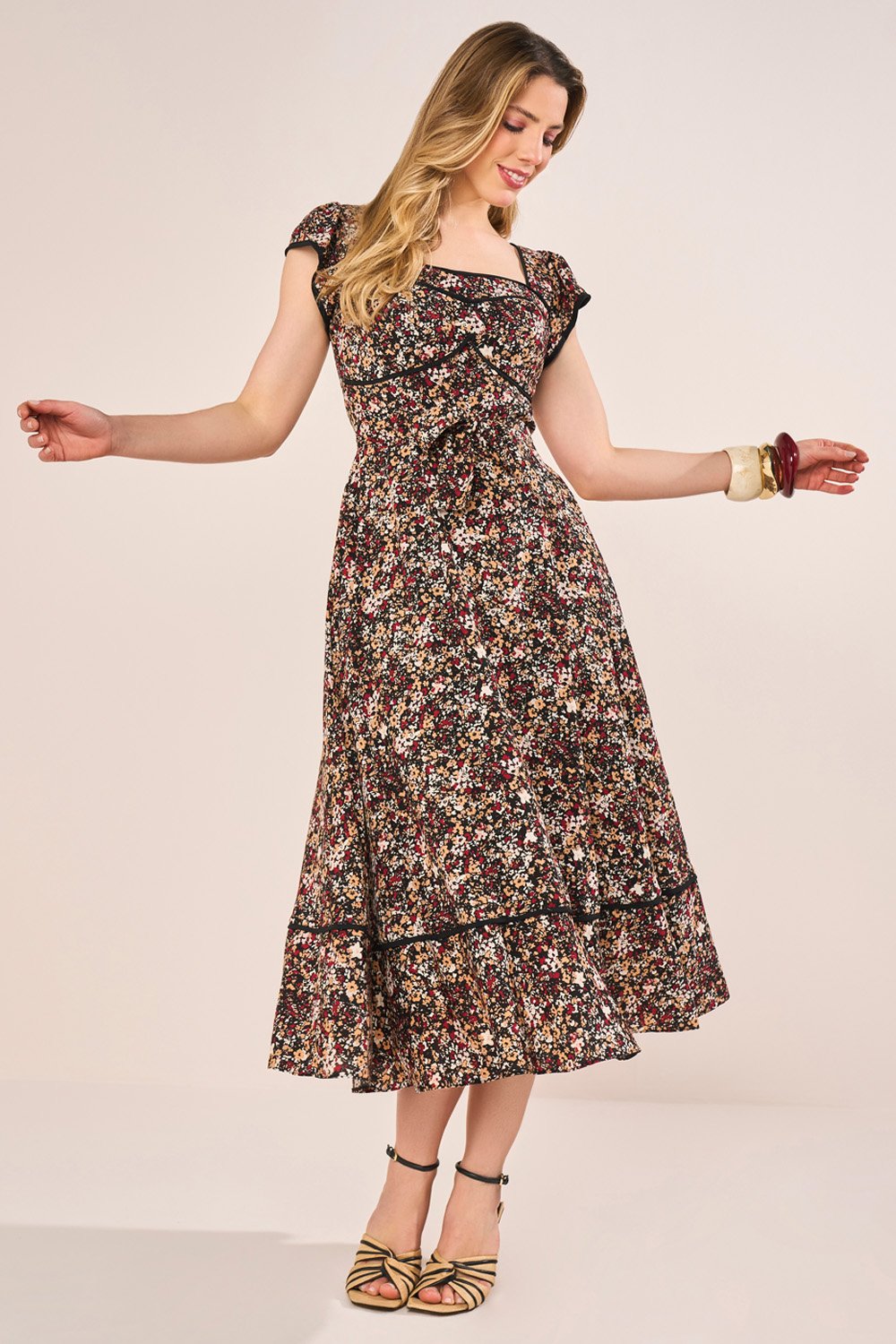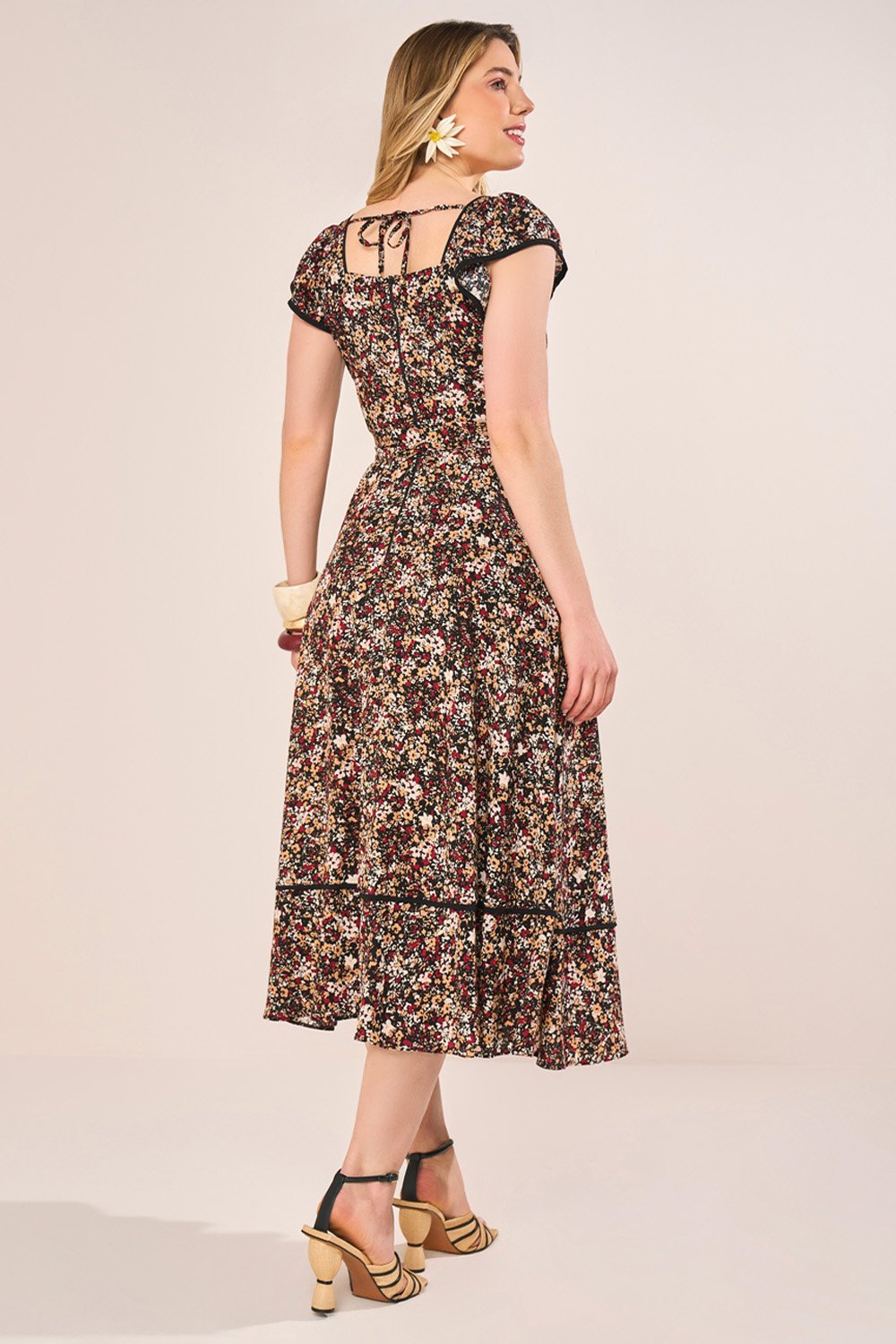 LANÇAMENTOFRETEGRÁTISENVIOIMEDIATOVestido Amarelo Detalhes Em Renda Evasê Midi FasciniusR$ 799,71 no PIX