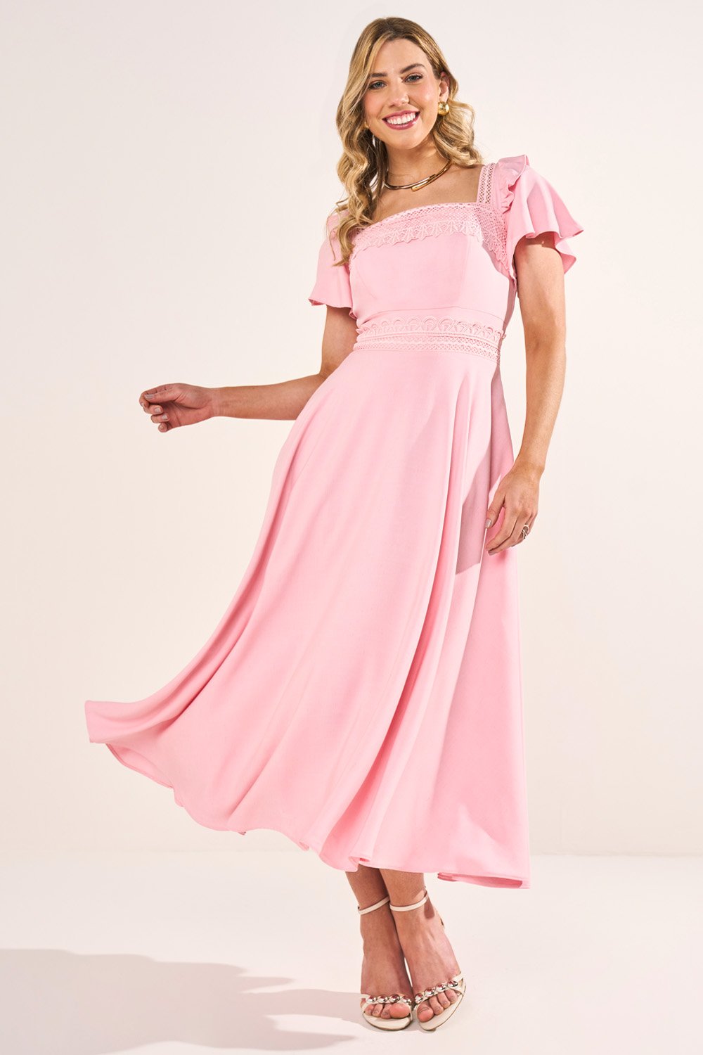 O cós em guipir é um dos pontos mais marcantes, realçando a feminilidade com sofisticação. A saia godê valoriza a silhueta, enquanto os bolsos funcionais oferecem charme e praticidade. Um vestido pensado para unir estilo, conforto e exclusividade.