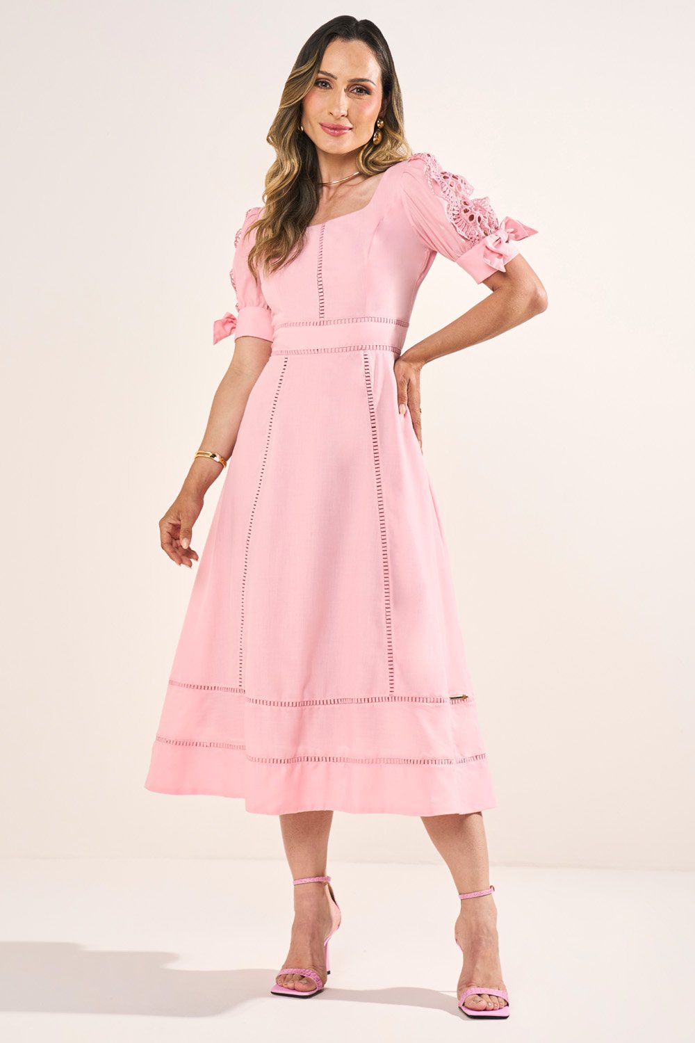 -30%FRETEGRÁTISENVIOIMEDIATOVestido Laranja Bordado Richelieu Evasê Midi Fasciniusde R$ 879,90 porR$ 572,81 no PIX