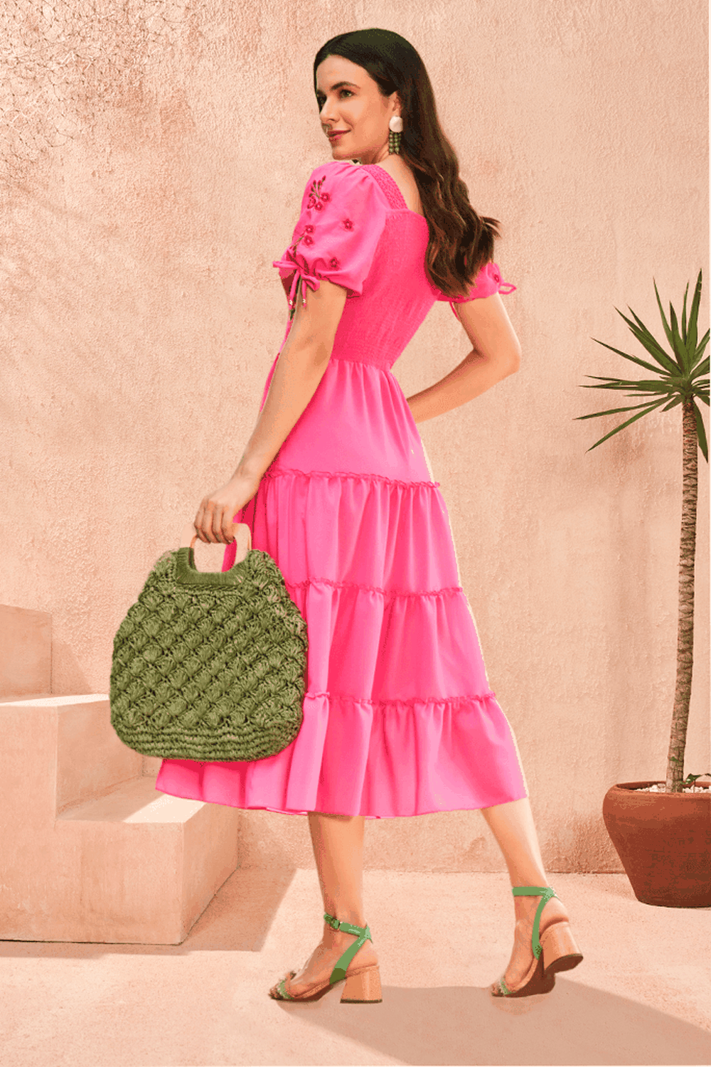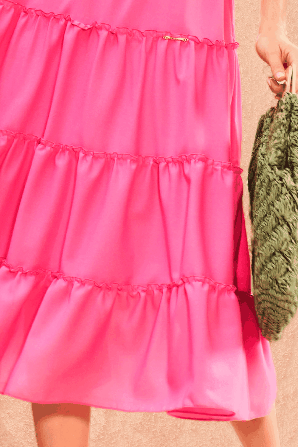 Combine-o com sandálias de salto alto para um toque de sofisticação ou opte por tênis brancos para um look mais descontraído. Sinta-se radiante e confiante, pois este vestido é a escolha perfeita para elevar seu estilo a novas alturas. Atemporal e versátil, é um must-have em seu guarda-roupa!