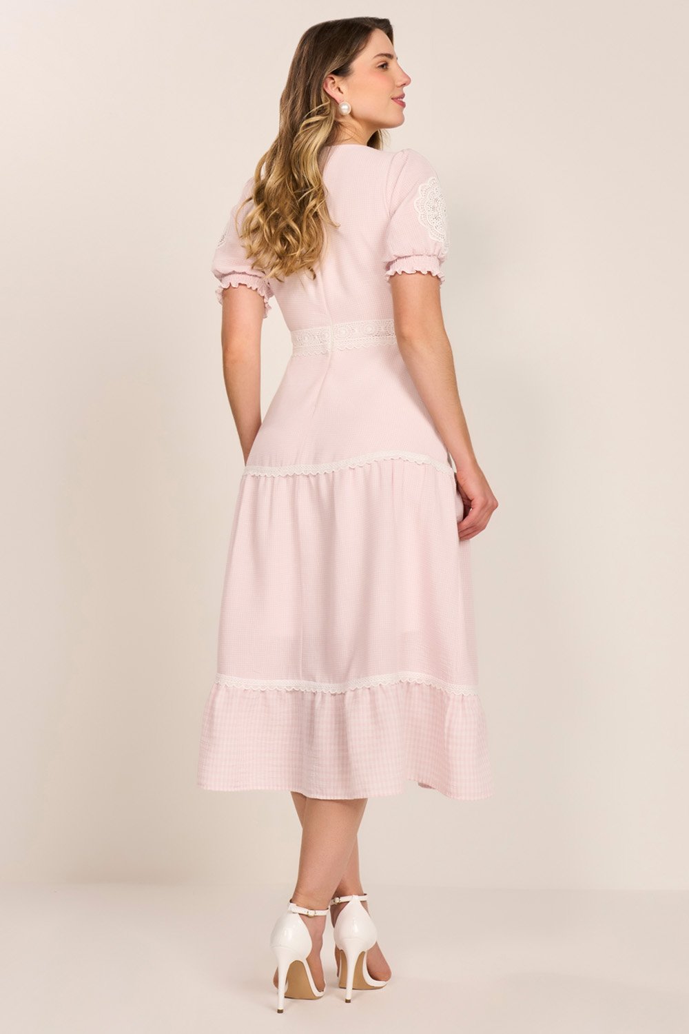 Confeccionado em tecido leve, o vestido proporciona conforto e ótimo caimento, ideal para o uso prolongado ao longo do dia. A textura suave e o toque macio valorizam a experiência de uso, trazendo charme e fluidez à peça. Conta ainda com forro para oferecer mais segurança e estrutura ao vestir.