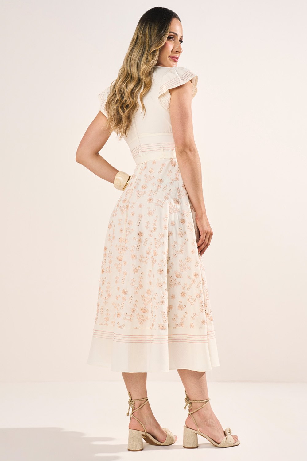 LANÇAMENTOFRETEGRÁTISENVIOIMEDIATOVestido Caramelo Com Bordado Richelieu Evasê Midi FasciniusR$ 836,91 no PIX
