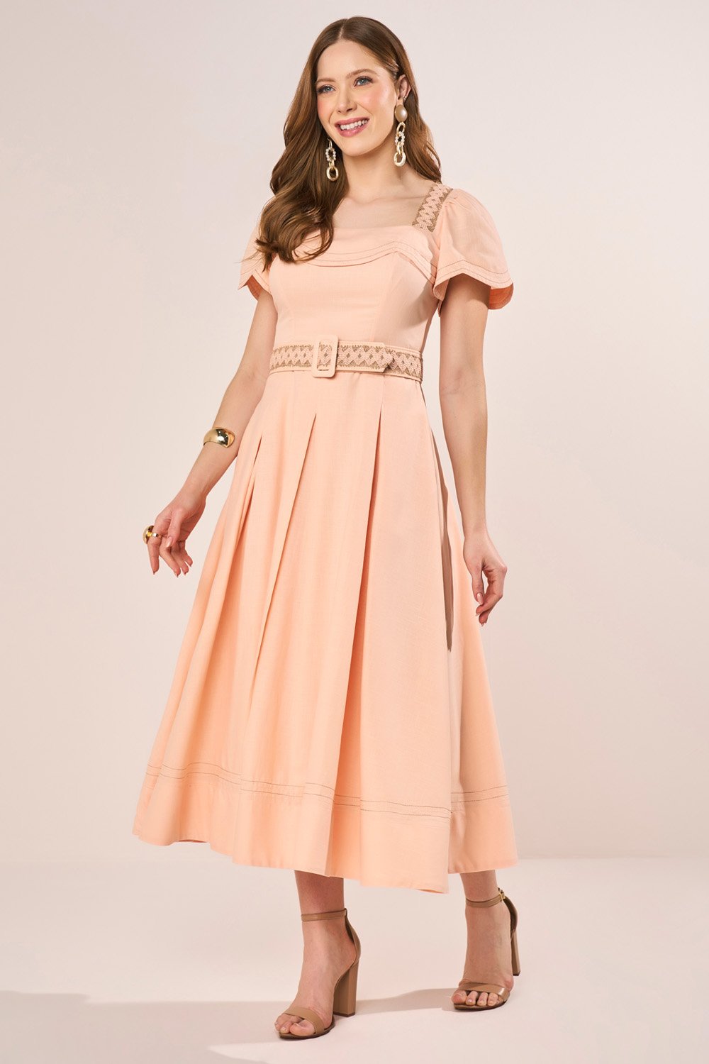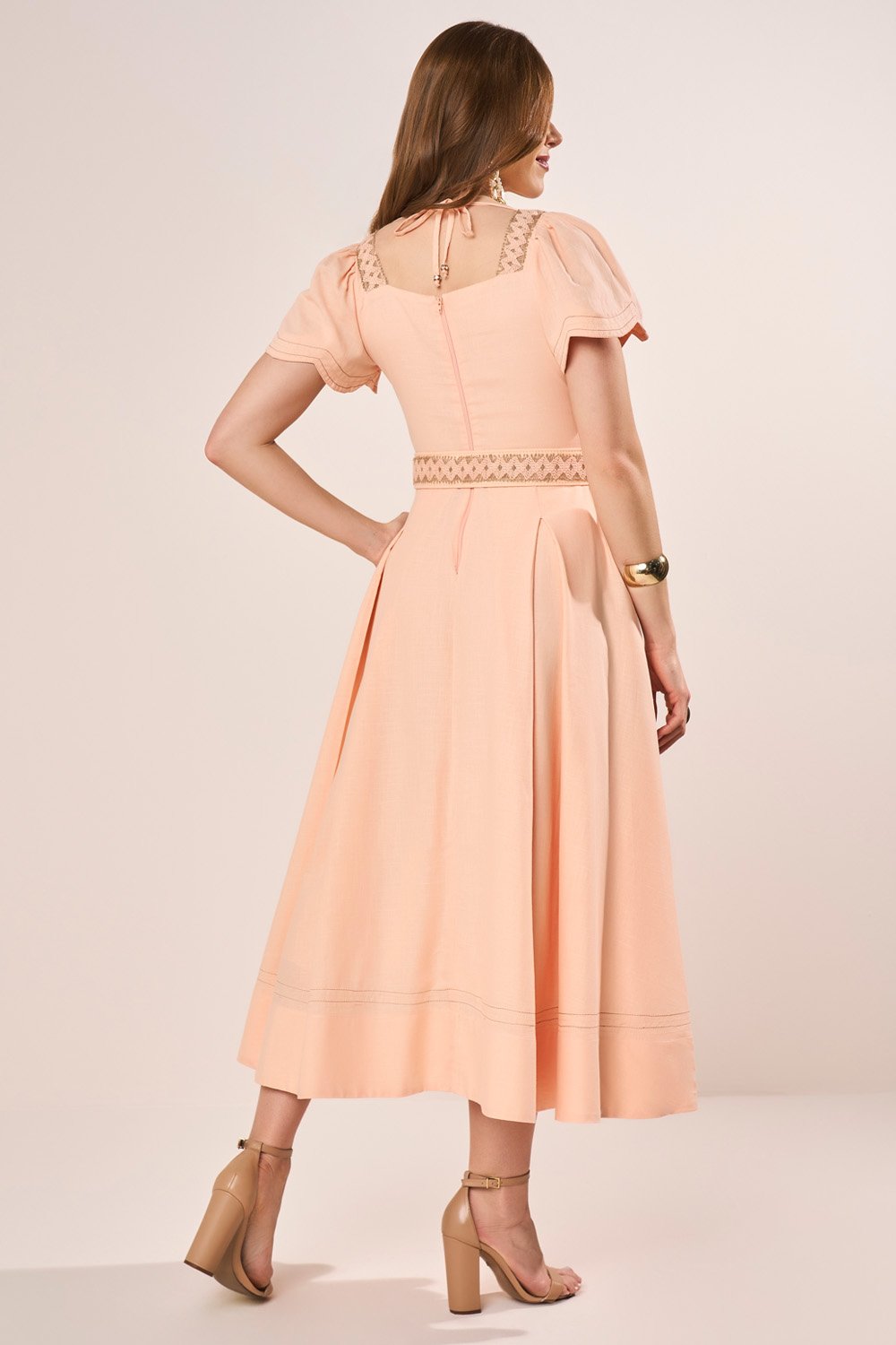 -20%FRETEGRÁTISENVIOIMEDIATOVestido Coral Com Guipir E Babados Evasê Midi Fasciniusde R$ 899,90 porR$ 669,53 no PIX
