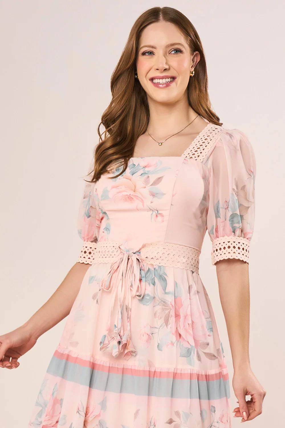 -20%FRETEGRÁTISENVIOIMEDIATOVestido Rosa Em Laise Com Guipir E Flores 3D Evasê Midi Fasciniusde R$ 759,90 porR$ 565,37 no PIX
