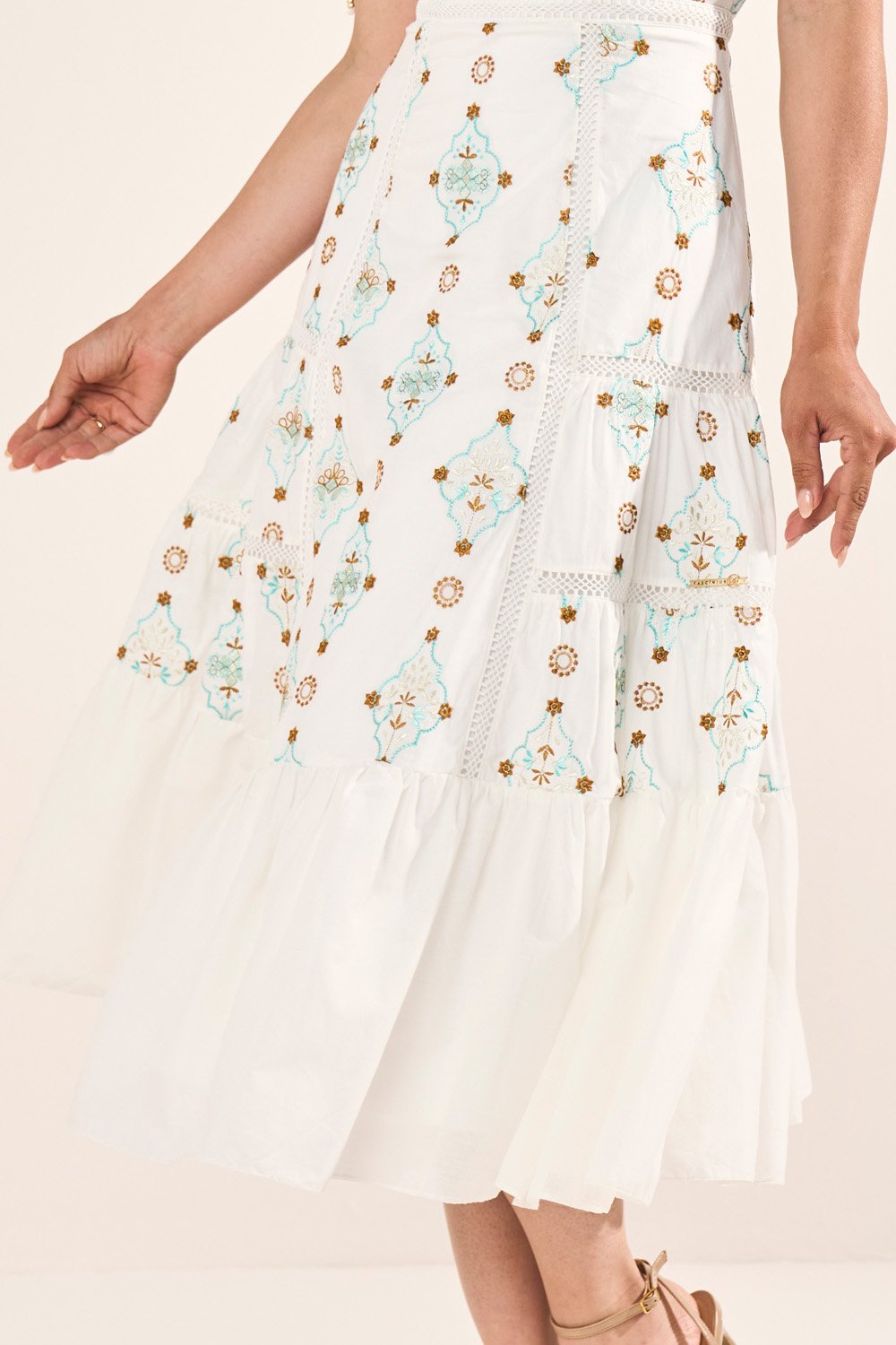 LANÇAMENTOFRETEGRÁTISENVIOIMEDIATOVestido Verde Bordado Industrial Evasê Midi FasciniusR$ 743,91 no PIX