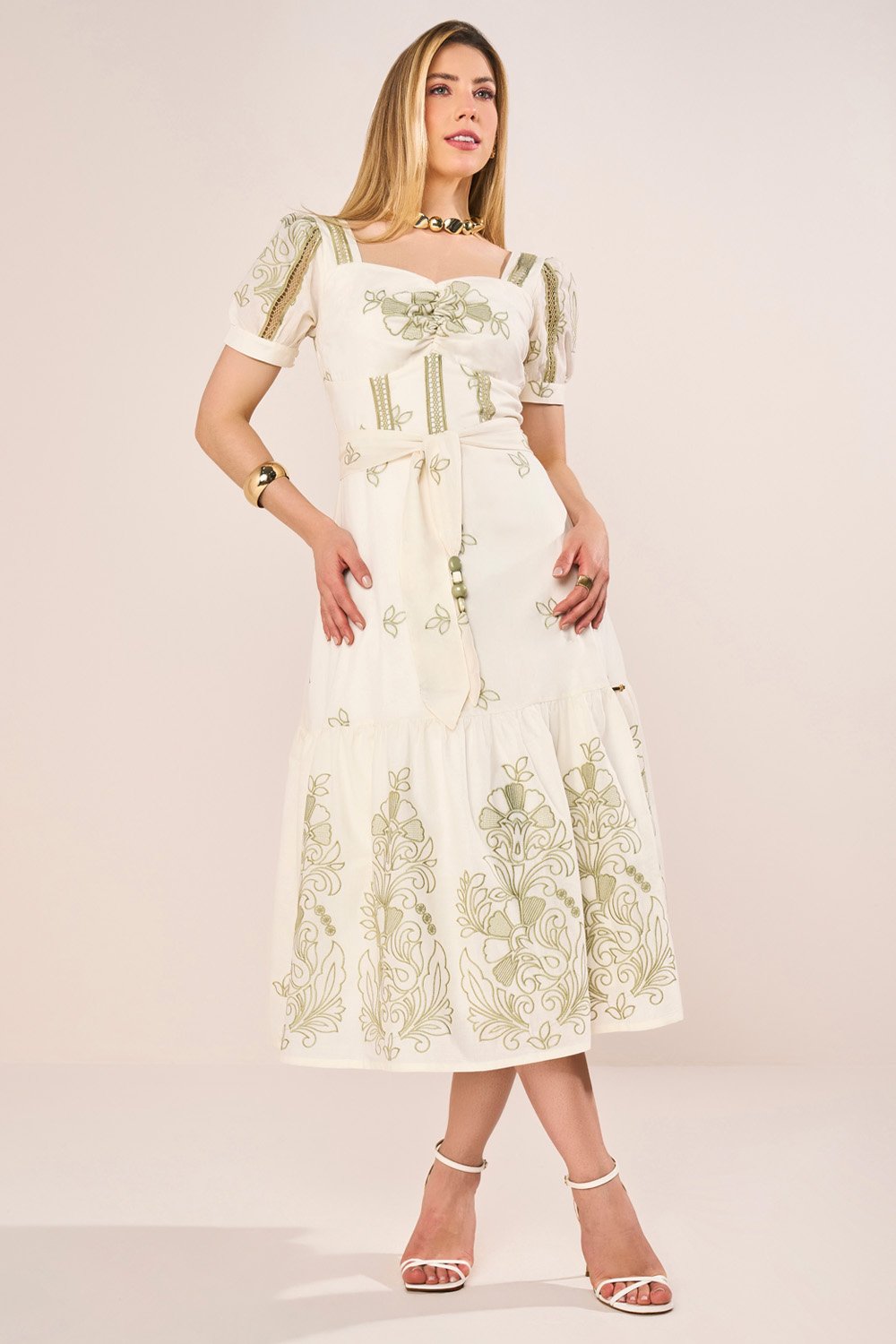 -15%FRETEGRÁTISENVIOIMEDIATOVestido Verde Com Guipir E Flores 3D Evasê Midi Fasciniusde R$ 1.159,90 porR$ 916,91 no PIX