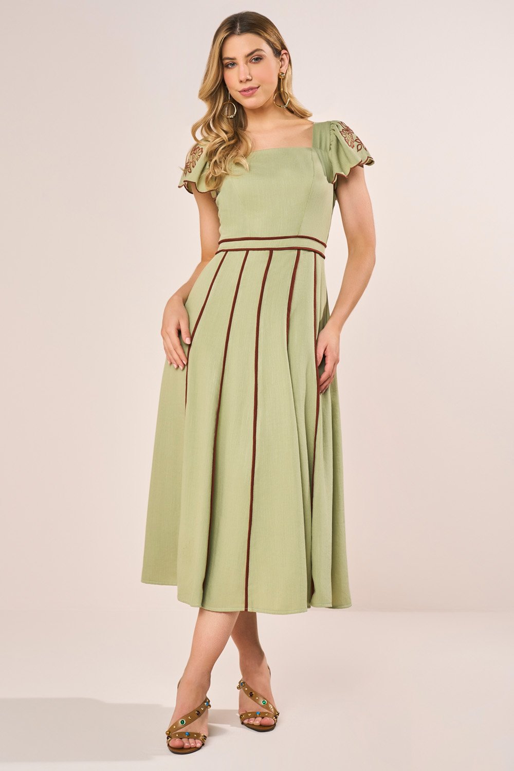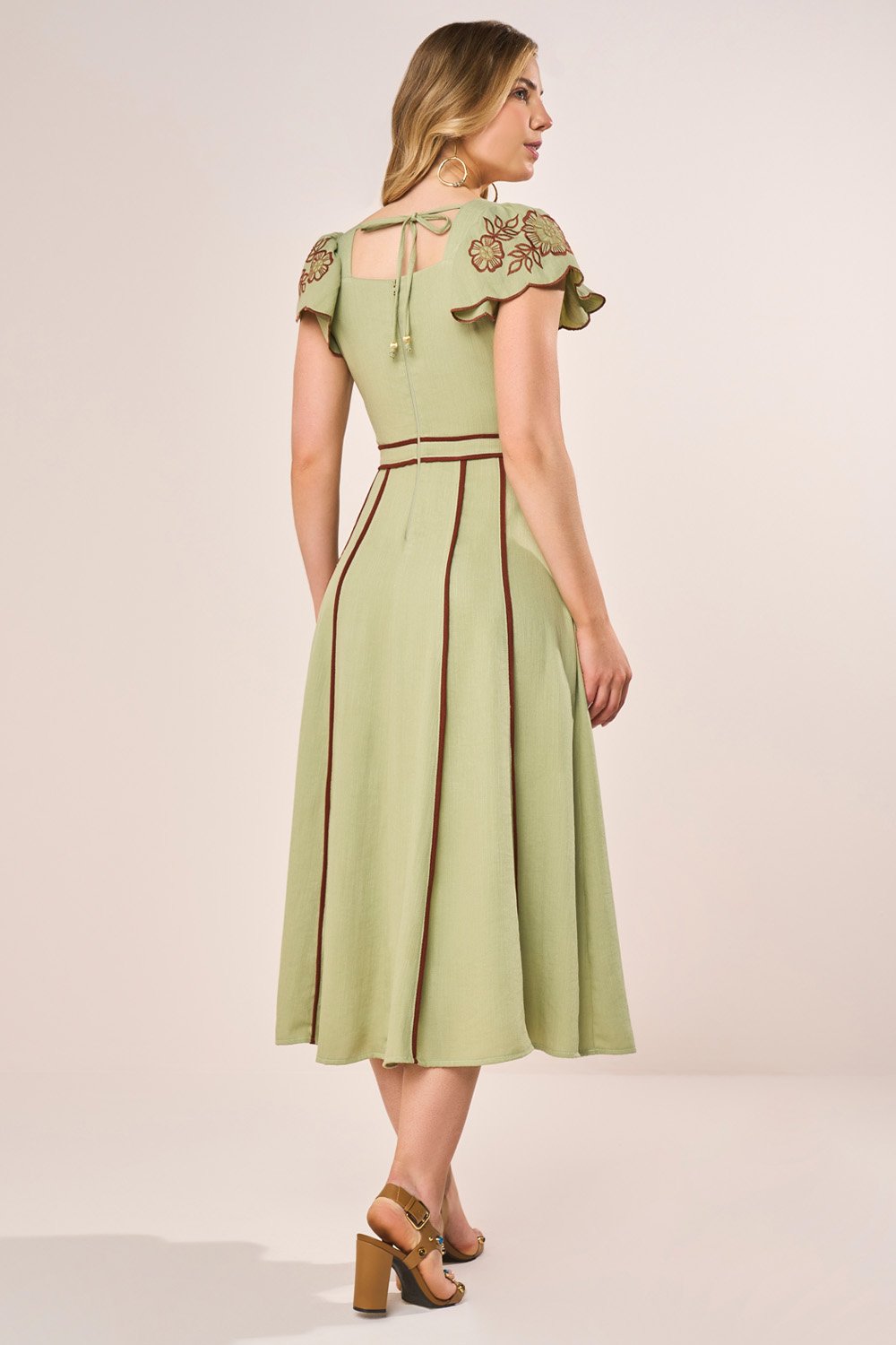 -20%FRETEGRÁTISENVIOIMEDIATOVestido Verde Agua Em Renda Floral Com Guipir Evasê Midi Fasciniusde R$ 799,90 porR$ 595,13 no PIX